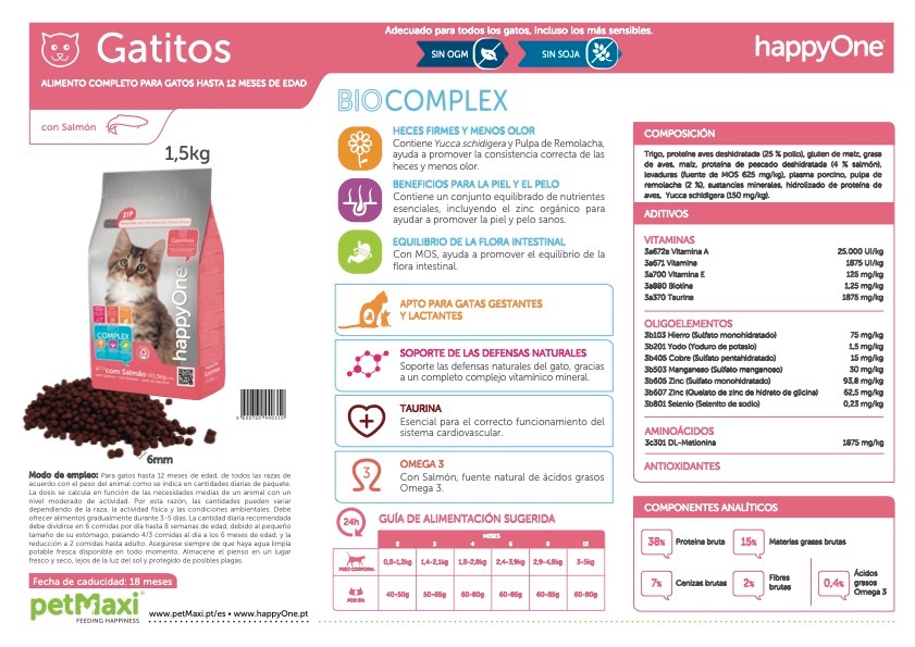 Alimento completo para gatos de hasta los 12 mese de edad.